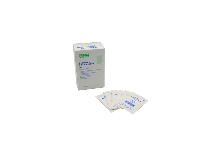 Non-adherent gauze pad. Individually wrapped. 5cm x 7.6cm. Sterile